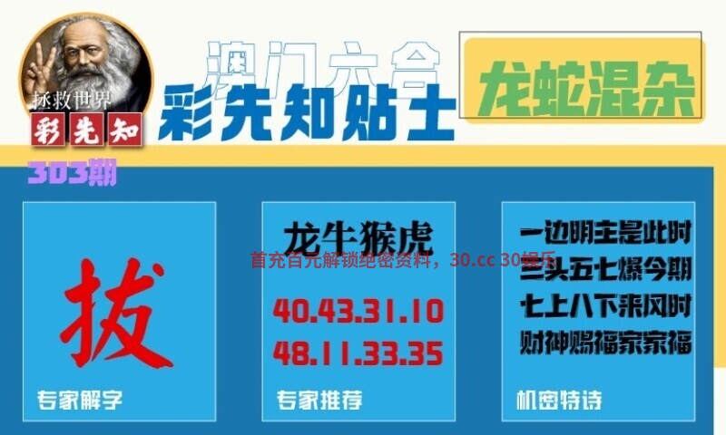 303期:彩先知贴士一字:【拔】 诗句:龙蛇混杂 机密特诗:一边明主是此时,三头五七爆今期,七上八下来风时,财神赐福家家福 解:七上八下来风时,解风肖:兔虎龙,财神赐福家家福,解福肖:鼠虎兔龙蛇猴 九肖:鼠虎兔龙蛇狗猪羊马 七肖:鼠虎兔龙蛇狗猪 五肖:鼠虎兔龙蛇 三肖:鼠虎兔 |